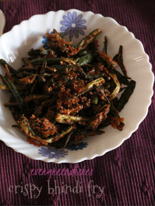 Kurkuri Bhindi Fry or crispy bhindi fry is a tasty accompaniment with any meal. Serve it with any meal as an accompaniment, it is loved and relished by all.