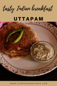 Uttapam is a thick savoury pancake like dish made from dosa batter that has a topping of onion and vegetables. It is filling and tasty.